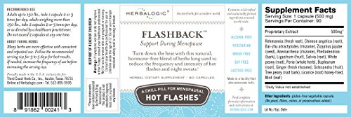 Studio : Third Coast Herb Co. Publisher : Third Coast Herb Co. Product Description Hormonal changes during menopause can lead to sudden, frequent, and intense hot flashes and night sweats. Flashback supports relief for hot flashes with a powerful combination of herbs used for centuries in traditional Chinese medicine.* Rather than depend on a single herb, which may not work with the body chemistry of some women, Flashback blend 16 herbs used in Chinese herbal medicine to cool the hot flashes and night sweats while addressing the poor sleep that often accompanies menopause. Our unique dual-action capsules are taste-free and alcohol-free with a two-stage release to provide fast delivery and longer-lasting support. Herbalogic formulas are minimally processed and made by hand in small batches using a centuries-old tincturing technique that extracts beneficial plant compounds without heat. We use only whole, non-GMO herbal ingredients, all of which are wildcrafted or sustainably farmed and have been tested for purity. No fillers, extenders, or artificial colors, flavors, or preservatives are used. 100% satisfaction guaranteed. Return within 30 days for a full refund of product price. 0