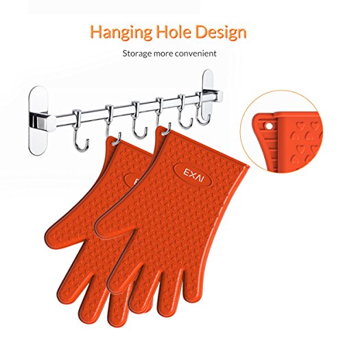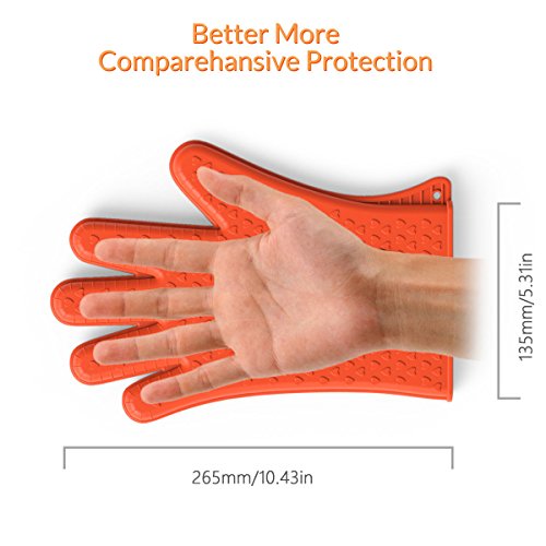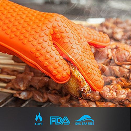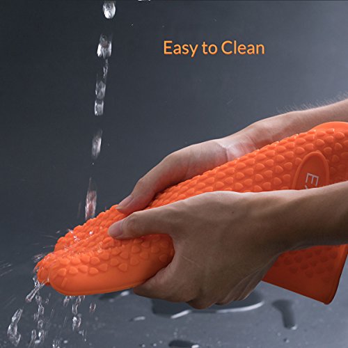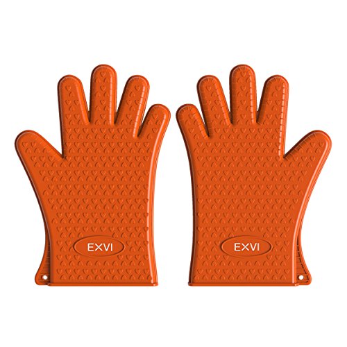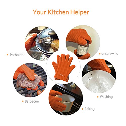 EXVI Heat Resistant Silicone Kitchen Gloves for Home Cooking Baking BBQ Grilling Oven Mitts (Orange)