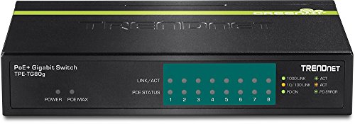 TRENDnet 8-Port Gigabit GREENnet PoE+ Switch, 8 x Gigabit PoE Ports, 123 W PoE Power Budget, 16 Gbps Switching Capacity, TPE-TG80g
