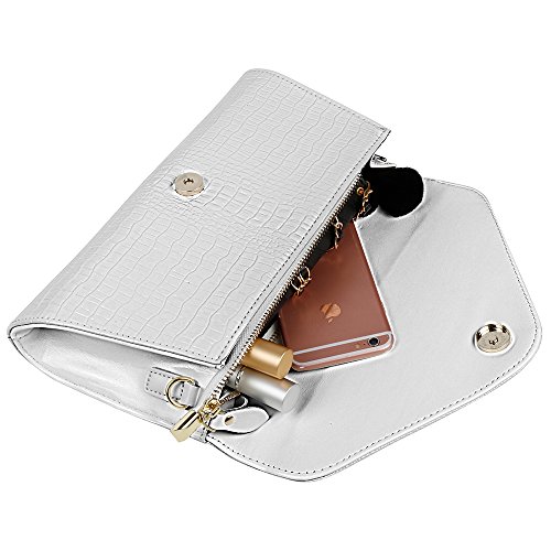 *Roomy capacity for iphone77P, Samsung8, makeup, keys, cards, small wallets etc *Top Quality, Sturdy Material, Reasonable Price *Stylish and fashionable for all seasons *With removable cahin, you can catch it as a clutch or as shoulder bag *You will be happy with the quality, and it will fit your needs very well