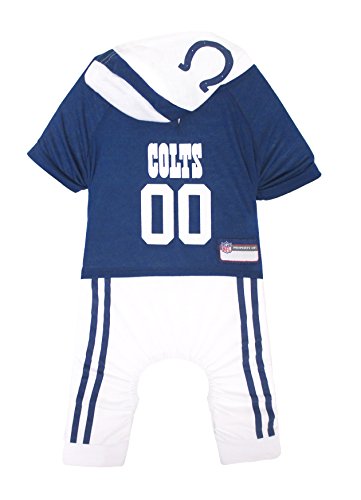 -. Binding : Misc. -. Brand : Pets First -. Color : Blue -. EAN : 0849790054134 -. Feature : Officially NFL Licensed! / NFL woven jock tag for personalization. - Team name and logos are printed to make this an outstanding pet outfit / Made with cotton poly for maximum comfort with a Velcro closure for easy fit / Machine wash cold. Do not bleach. Line dry. Do not iron print / For sizing specifications, please refer to the Size Chart below the item's picture, by measuring your pet from the nape of the neck to the base of the tail -. Label : Pets First -. Manufacturer : Pets First -. Model : INC-4050-MD -. MPN : INC-4050-MD -. PackageQuantity : 1 -. PartNumber : INC-4050-MD -. ProductGroup : Pet Products -. ProductTypeName : PET_SUPPLIES -. Publisher : Pets First -. Size : Medium -. Studio : Pets First -. Title : NFL Indianapolis Colts Pet Onesie, Medium -. UPC : 849790054134