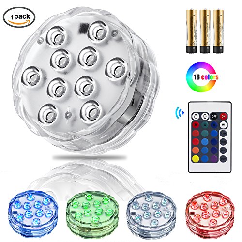 Submersible Swimming Pool LED Lights with Remote Controlled,Battery Powered RGB 16 Colors Changing 1 Pack IP68 Waterproof Lights for Hot Tub,Garden,Halloween,Home Decorations and Christmas Party