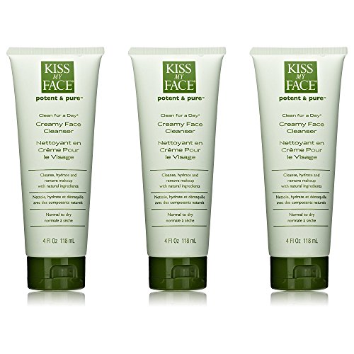 Kiss My Face Organic Clean for a Day Creamy Face Cleanser, Face Wash 4 Ounce Tubes (pack of 3)