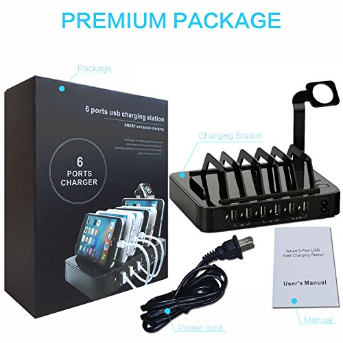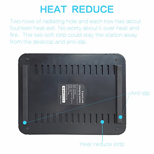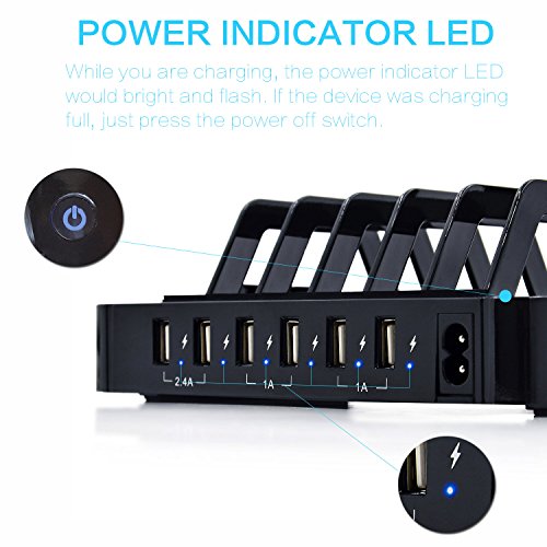 1. 50W, 6-PORT POWERFUL CHARGING STATION: USB ports can automatically identify the voltage of different devices and provide the power to multiple devices. The one-stop charging solution for multiple devices charging task can automatically identify your devices and charge at a faster speed (2 x 2.4A +4 x 1A)