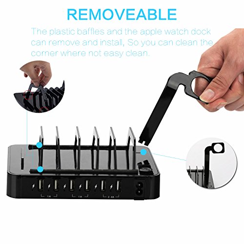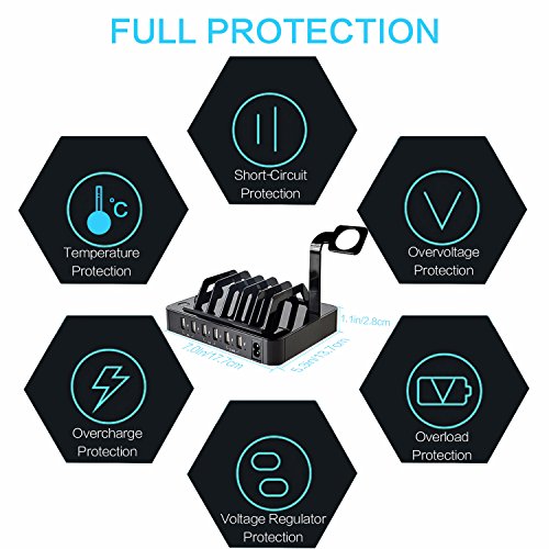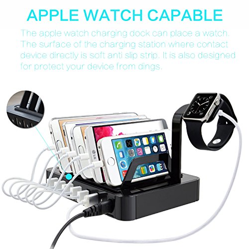 5. ANY DEVICE CAPABLE: This device charging station works smoothly with any USB-powered device such as Apple iPhone, Watch, iPad and Android smartphones, tablets, cameras, eReaders, Bluetooth headsets, speakers and more.
