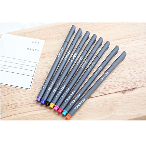 -. Feature : 8 Kinds of Specifications Fine Point for Different Purpose, Satisfied with Your Needed in Any Activities / Black gel ink, no smears, no smudges, no globs / Quick-drying Permanent Ink, Writing Smoothly / Perfect for Business, Office, Designing, Drawing, Learning, Sketching, ect. / 8-pcs pens organized in a felt button snap pouch, convenient to carry around