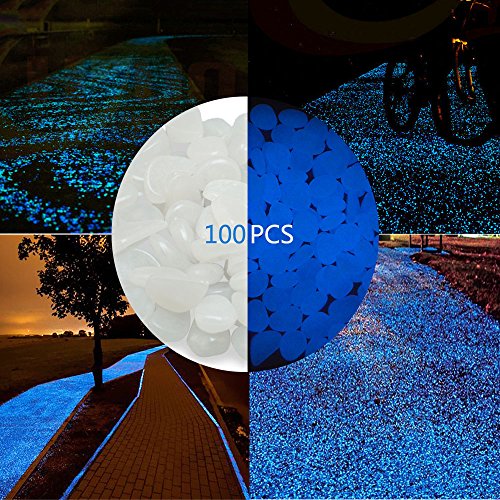 -. Title : VERKB 100pcs Glow in the Dark Stones, Garden Pebbles Rocks for Outdoor, Walkway, Window, Yard Grass, and Fish Tank Decoration (Light Blue)