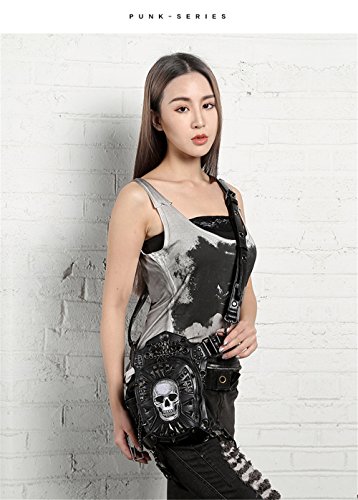 -. Brand : Steelsir -. Color : Black -. Department : womens -. EAN : 0713965978498 -. Feature : Style:fashion/punk/gothic/steampunk/cool -. Model : GTLY-KLB1609 -. PackageQuantity : 1 -. ProductGroup : Apparel -. ProductTypeName : LAGE -. Size : free -. Title : Gothic Steampunk Skull Bag Women Leather Rivet Waist Small Motorcycle Leg Bag for Men -. UPC : 713965978498
