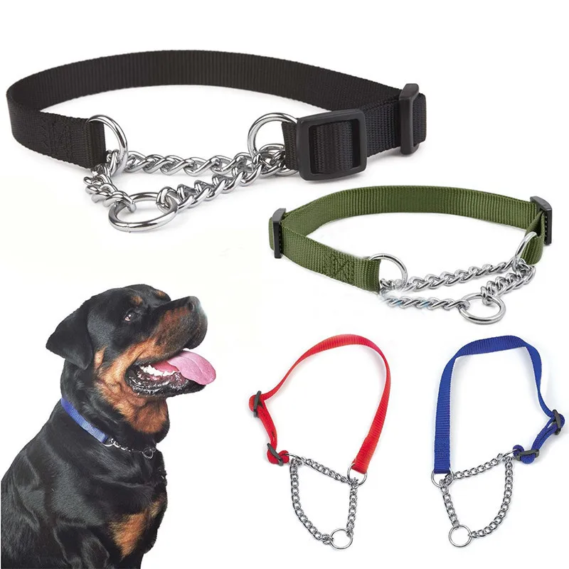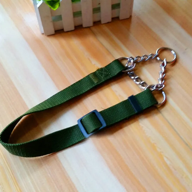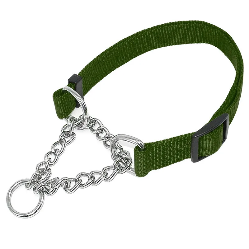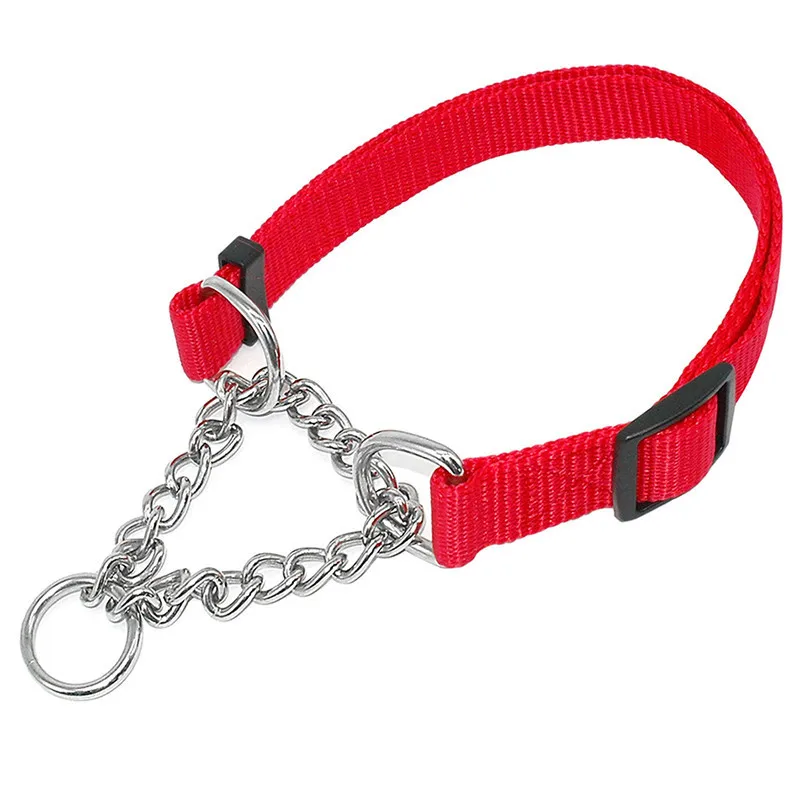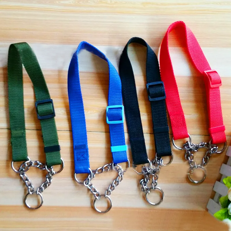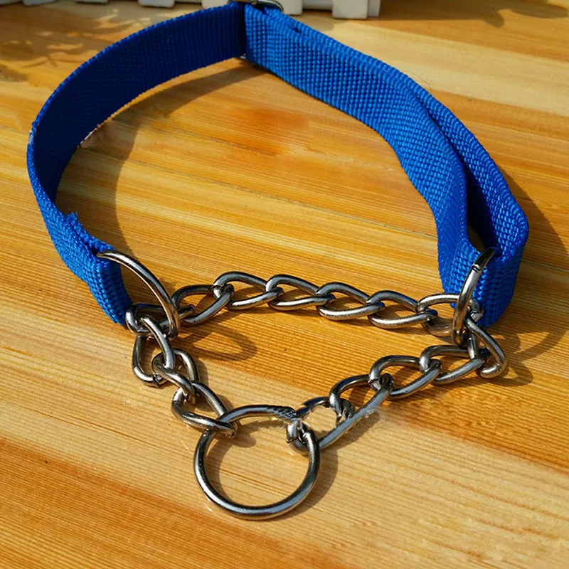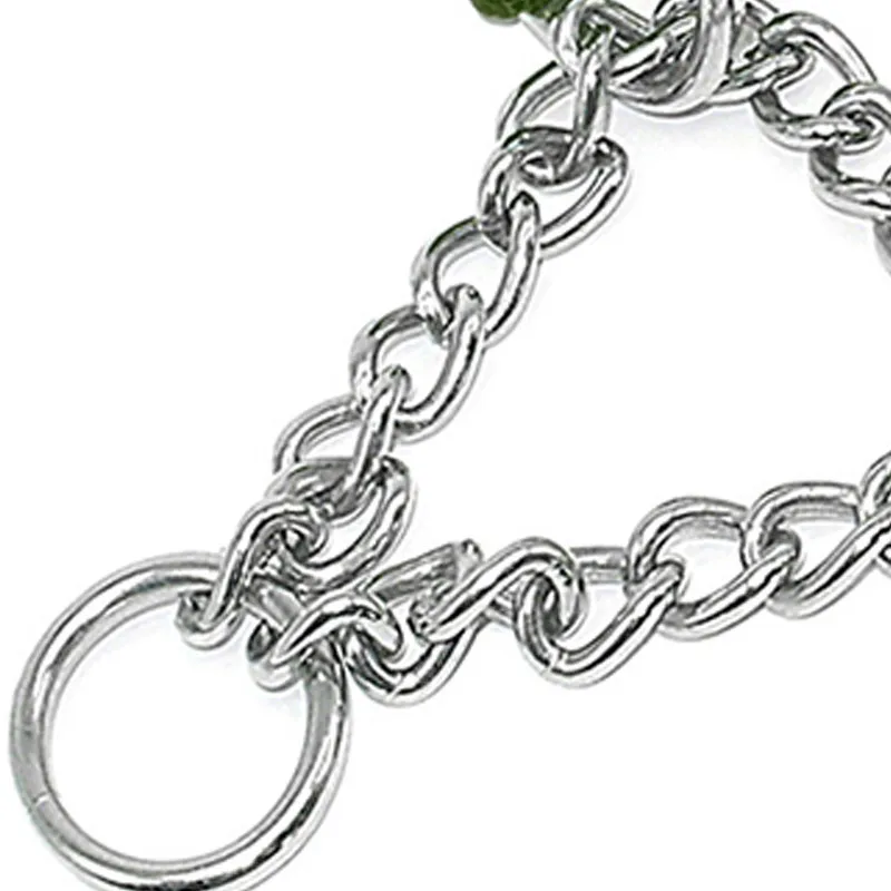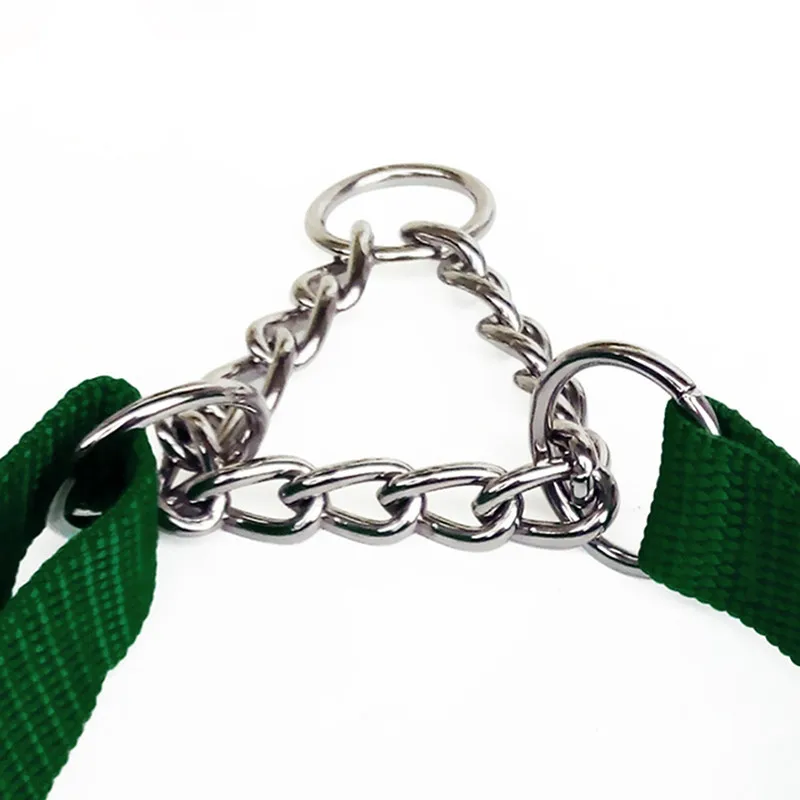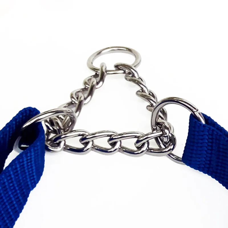 Material:nylon collar and chrome plated, welded link chain