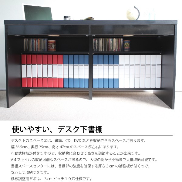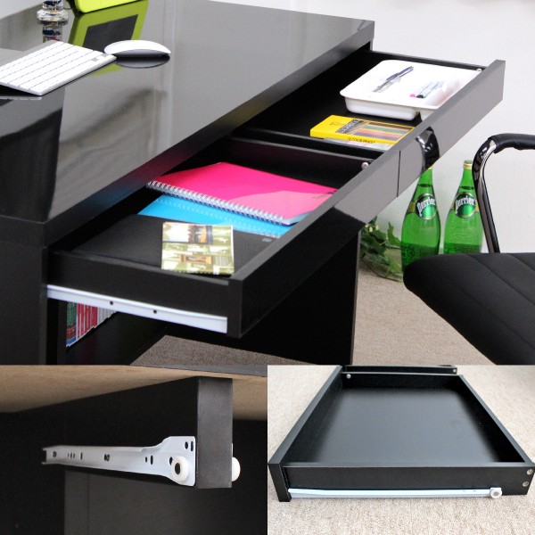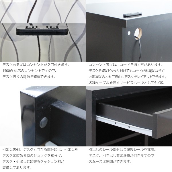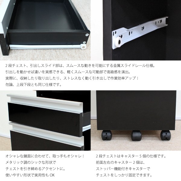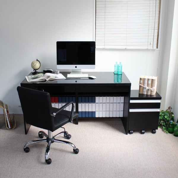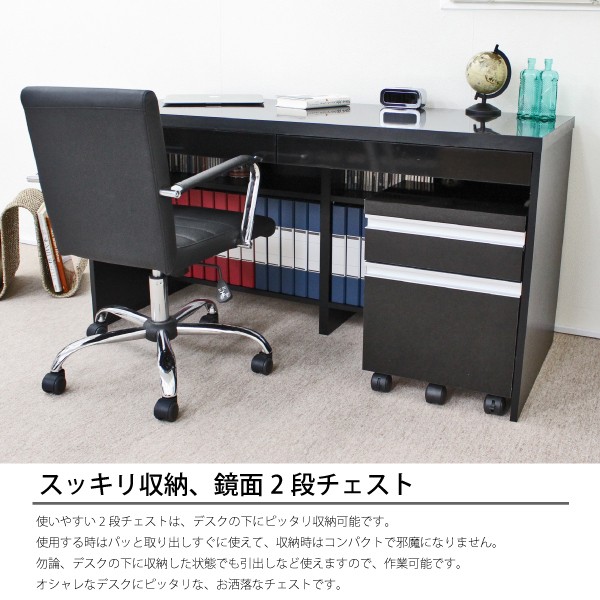 送料無料 オフィスデスク パソコンデスク 書斎机 鏡面 引き出し 2点 セット 2段 チェスト 120cm 木製 ブラック 北欧 おしゃれ モダン