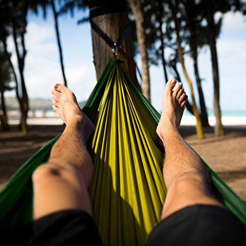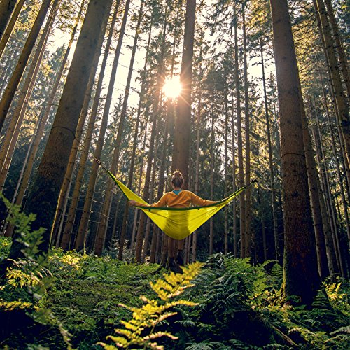 DON'T STARE AT A TENT, GAZE AT THE STARS: This portable hammock redefines grab-n-go camping. It is a perfect alternative to a tent and a BULKY SLEEPING BAG. Why sleep in the outdoors only to stare at the inside of your tent? Instead spend the night star gazing and filling all your senses with the SIGHTS, SMELLS & SOUNDS OF NATURE! It’s fantastic for the lazy days of summer, or being a castaway by the lake or in your backyard. Heck, you could even use it indoors when unexpected guests drop in.