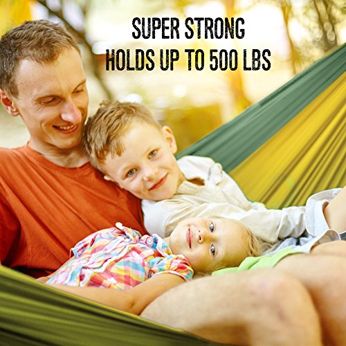 WILL FIT AND HOLD AN ELK: Two person Foxelli Hammock legitimately holds up to 500 lbs but we have tested it to safely hold OVER 900 LBS, so you can crash in it with your spouse, two kids and even add a grandparent too. Be the hero of your next outdoor adventure by bringing along this hammock to share with others.