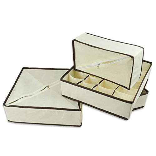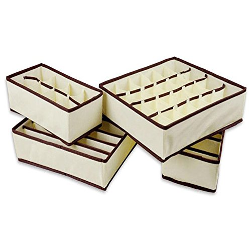 -. Title : yazi Collapsible Storage Boxes Bra Underwear Closet Organizer Drawer Divider 4 Set,Beige