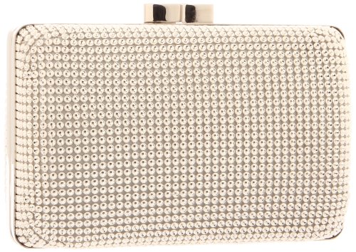 -. Feature : Hard-shell evening clutch featuring dimple-mesh exterior