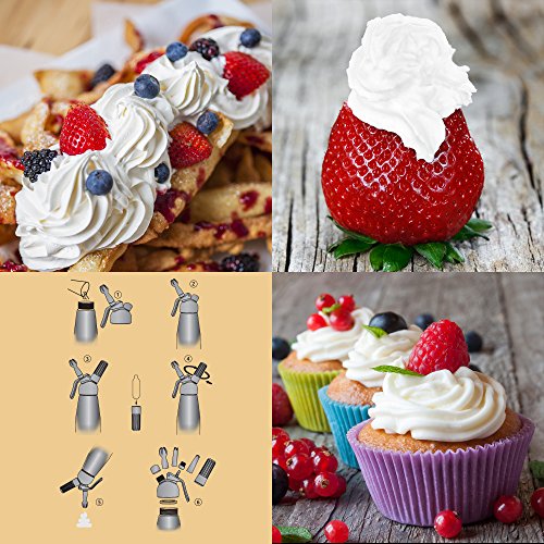 GET DETAILED INSTRUCTIONS AND AN AMAZING RECIPE E-BOOK FOR FREE: Forget about struggling, trying to find out how to use your whip cream dispenser. This must have kitchen tool comes with full color, detailed, easy to follow instructions that will save you time and effort. In addition, you will be offered a very interesting recipe e-book which will teach you amazing tips at no additional charge!