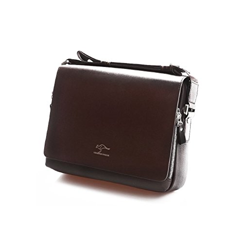 -. Title : Pixnor Men's Shoulder Bag PU Kangaroo Kingdom Messenger Bag Size L Brown