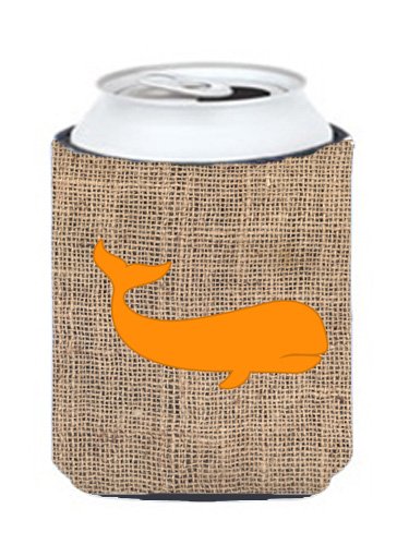 Whale Burlap and Orange Can or Bottle Beverage Insulator Hugger BB1021