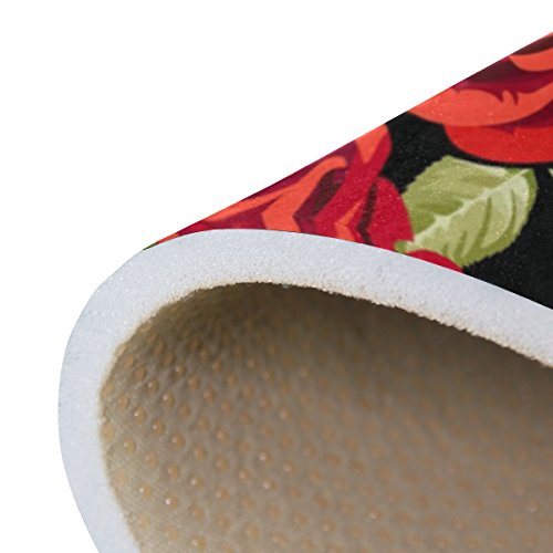 Material Our area rug are made of high quality and durable polyester. Middle: high-density memory sponge, effectively alleviate the foot pressure. Bottom: non-woven fabric, which is non slip.