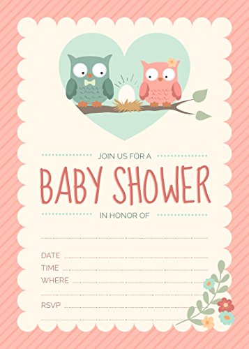 Owl Baby Shower Invitations Pink for Girl (24 Count) 5x7 Invites with Envelopes