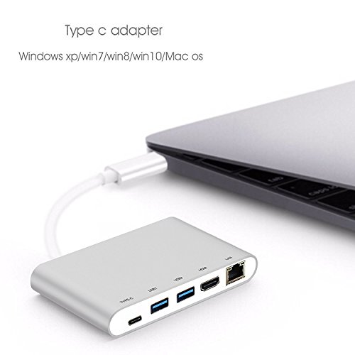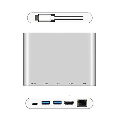USB-C Digital AV Multi-port Adapter,USB C Hub,3.1 Type C Hub with Power Delivery for Charging,HDMI 4K Output,2 USB 3.0 Ports and Gigabit Ethernet,(Silver Aluminum )