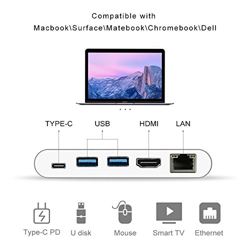 Expand your Type-C port: 2 high speed USB 3.0 ports transfer data up to 5Gbps, and Gigabit Ethernet adapter port fastly connect internet