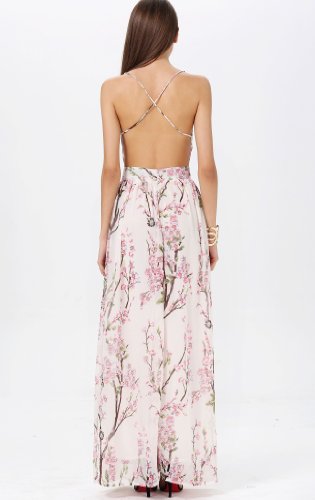 Feature : 100% polyester / Backless, chiffon, straps crossed at the back / Long, flowy, sundress, for summer, spring, fall, party, holiday, beach, etc / Model: Height:173cm/5'8", Bust:89cm/35", Waist:60cm/24", Hip:90cm/35", Wear: Size L, wearing a pair of 4.5" high heels / Please refer to Size Chart in Product Description as below