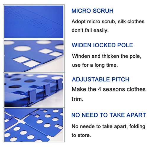 Xubox Clothes Folder, Adjustable Plastic 2mm Thickness T-shirt Folding Board Easy and Fast Laundry Folder Board Organizer Flipfold Rack for Adult Dress, T-shirts, Pajamas, Pants and Sweaters, Blue