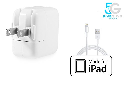 Five Guys Gadgets Lightning Connector Bundle with 10 Feet USB Charger Cord and Wall Plug Adapter for Apple Models - White