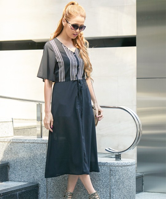 実寸 着丈:115 肩幅:36 身幅:96 ウエスト:68-90 袖丈:29 袖口:50 裾幅:196