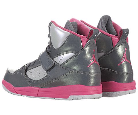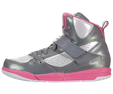 nike air jordan girls flight 45 high PS kids trainers 524863 sneakers shoes (uk 11.5 us 12C eu 29.5, cool grey white metallic platinum dynamic pink 029)