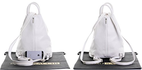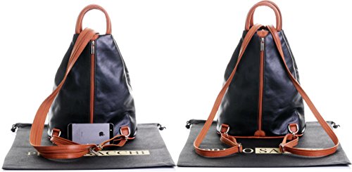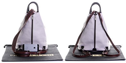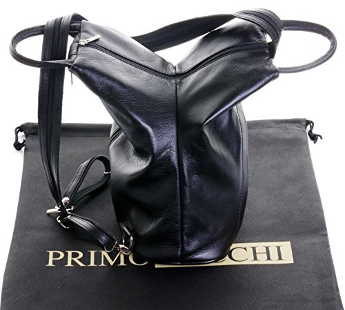 Product Description This gorgeous stylish, practical, and very unusual soft leather multi function bag, is made in Florence from high quality Italian leather. The main compartment is secured by a front to back zip,inside, there is one main compartment with a zipped picket in the lining, and a vanity pocket. On the outside front, there is a diagonal zipped pocket and an open horizontal pocket, whilst at the back, there is a full height zipped pocket.