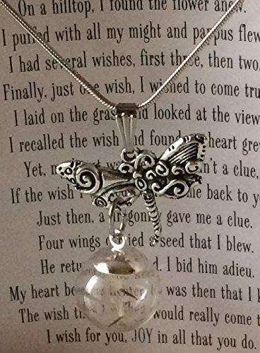 Smiling Wisdom - A Dandelion Wish For You Story Gift Set - 2017 Dragonfly with Real Dandelion Seeds Dangle Necklace - Birthday, Christmas, Goodbye Wish - For Her, Antique Silver.
