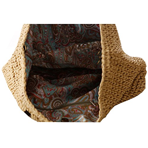 - Feature : Material: Straw / Size: 40X35X16CM/15X13X6"; Handle height: 26cm/10" / Ultra Strong & Durable / Zipper Top Closure / Can be used for anything from strolling along the beach, shopping, or just as an every day bag.