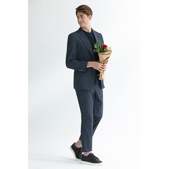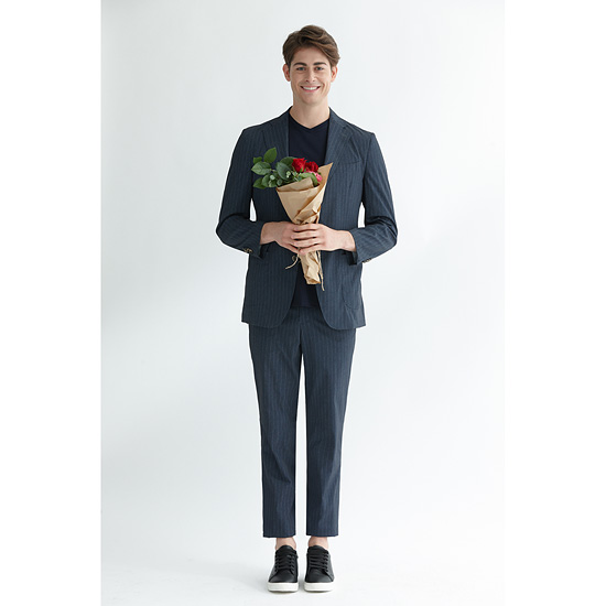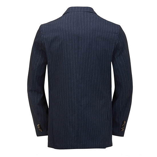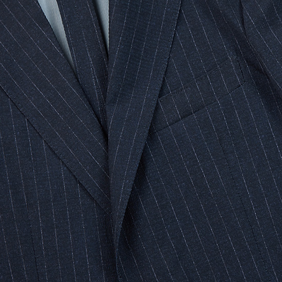 - 시어서커 주름 가공과 스트라이프 패턴을 적용한 남성 자켓.