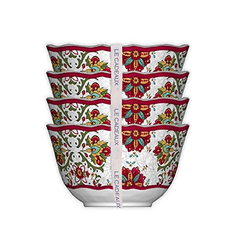 Pull out the fancy bowls without the fear of them being broken. The Set of 4 Desert Bowls Allegra Red from Le Cadeaux are drop proof and beautiful! Le Cadeaux makes life's every-day moments a little more special. Focusing on their innovative heavy, unbreakable melamine china and glassware, Le Cadeaux dinnerware passes for true ceramic pottery. Dress your table in their gorgeous French and Italian inspired designs with dependable, indoor/outdoor dishware.Feature
