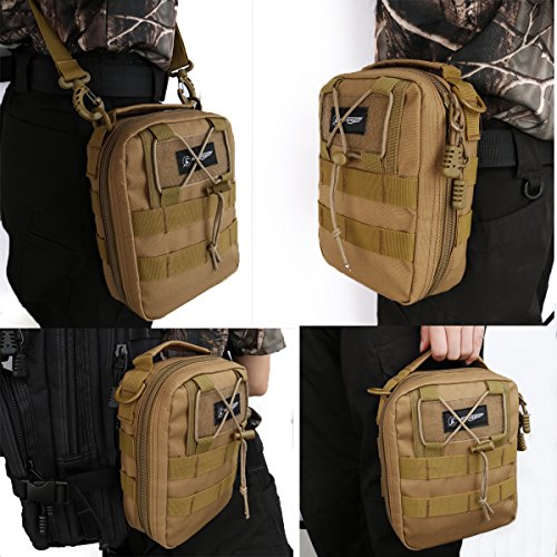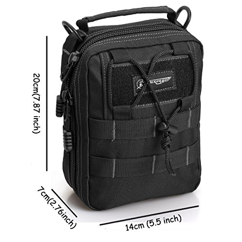 -. Feature : ★LOTS OF ROOM: W2.76*5.5*7.87 inches. IFAK Pouch that contain tight, internal elastic straps and a spacious pocket for vital first aid supplies. only and empty with shoulder strap, didn't include medical supplies / ★ MULTI MOLLE HANGING SYSTEM:make it was hung other bag,Greatly expanded its capacity ★ MOLLE SYSTEM ATTACHMENT STRAPS:it's suitable for tactical belt, tactical molle vest or molle backpack, molle width can be adjustable for different width belt.tactical message bags / ★ EASY TO USE: The medical pouch has Double zipper, Full zipper clamshell openingand. it will open all the way flat so it won't snap shut when you are trying to access medical supplies cell phone,earphone,keychain,keys,digital camera, power bank, cigarette lighter, medical supplies, Camping Utility Gadget,Tactical Gadget,portable GPS devices,small gadget,pens and everything else you need readily accessible. / ★ FITS YOUR ACTIVE LIFESTYLE. It's a Travel First Aid Kit (TSA Compliant), a Tactical hunting First Aid Kit (MOLLE compatible) AND a hiking first aid kit (with room for you to add-on items) and also ideal for biking camping survival,Motorcycle. We believe the best first aid kit is the one you have with you, so don't forget to put one in your car kit too! / ★ HIGH QUALITY,TOUGH and DURABLE: Red 600D Polyester material and sturdy double stitching gives this tactical medic pouch durability in any environment.MOLLE straps with snaps allows attachement of this medical pouch to any MOLLE compatible gear without falling off★Our original D ring design on the side can be used to give this IFAK bag attachment flexibility. Use them to attach a shoulder strap,attach it in your car or truck,and is perfect for a JEEP rollbar and other recreational vehicles.