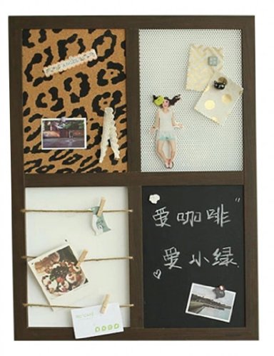 -. Feature : wood grain / Magnetic Cork sheet,Leopard magnet hook,white chalk,eraser / Magnetic Dry erase surface for writing, creating charts, or leaving messages. / Display a photo, leave notes and keep bills in one place / Your family's ultimate message center