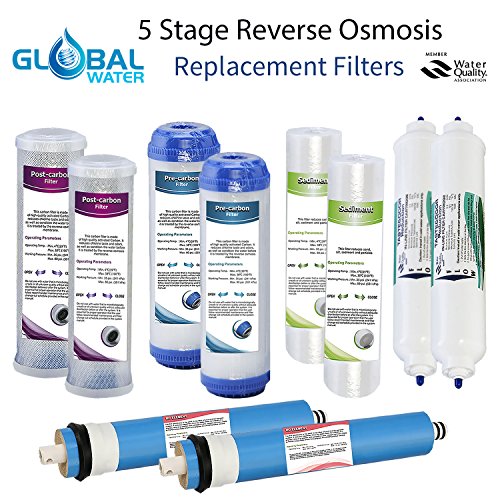 -. Title : Global Water Universal 10' Global Water 2 years Replacement Filter Set for 5-Stage Reverse Osmosis RO Filters with 50GPD Membrane, Fits all 5-stage RO Systems.