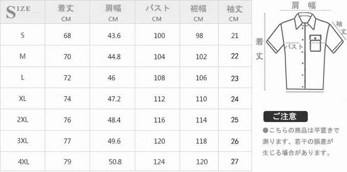 ■実寸サイズ(cm):S〜4XLサイズ写真をご覧下さい。