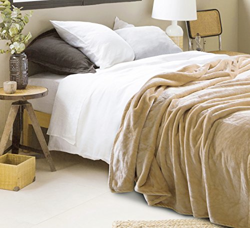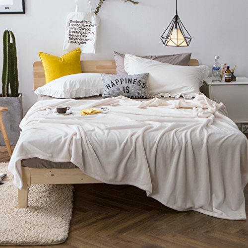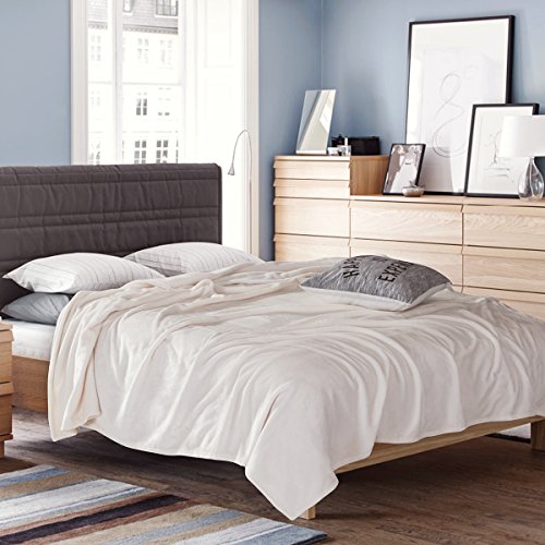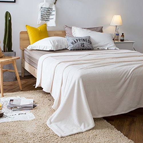 Luxury Collection Ultra Soft Plush Fleece Lightweight All-Season Throw/Bed Blanket (Queen (78-Inch-by-90-Inch), Ivory)
