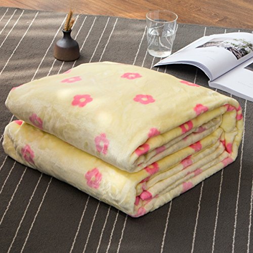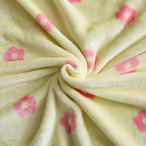 Qbedding 380 GSM Anti-Static Microplush Twin (59-Inch-by-78-Inch) Fleece Blanket, Flower-Yellow