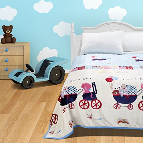 Qbedding 380 GSM Anti-Static Microplush Twin (59-Inch-by-78-Inch) Fleece Blanket, Kiki Kitty Land