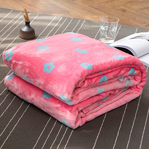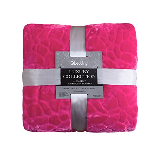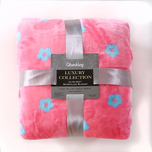 Qbedding 380 GSM Anti-Static Microplush Queen (78-Inch-by-90-Inch) Fleece Blanket, Flower-Pink