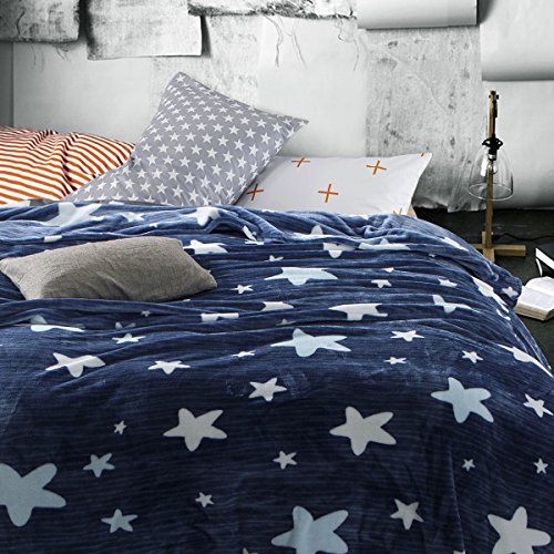 Qbedding 380 GSM Anti-Static Microplush Queen (78-Inch-by-90-Inch) Fleece Blanket, Simpson Star