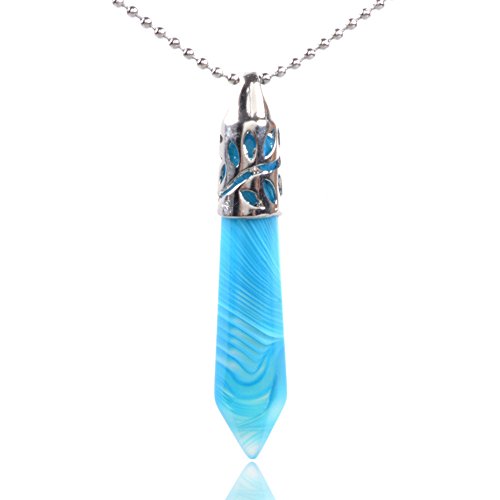 - Title : Justinstones Sky Blue Brazilian Agate Gemstone Hexagonal Pointed Reiki Chakra Pendant Necklace 18"