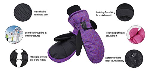 Sizes: Measure kids' hands and match to the ranges below Toddler (1-2 years): under 4.3" from bottom of palm to fingertips, glove length 7" with 2.25" woven cuff XS (2-3 years):under 4.75" from bottom of palm to fingertips, glove length 7.25" with 2.25" woven cuff S (4-6 years): under 5" from bottom of palm to fingertips, glove length 7.75" with 2.25" woven cuff M (7-9 years): under 5.25" from bottom of palm to fingertips, glove length 8.25" with 2.25" woven cuff L (10-12 years): under 5.5" from bottom of palm to fingertips, glove length 8.75" with 2.25" woven cuff