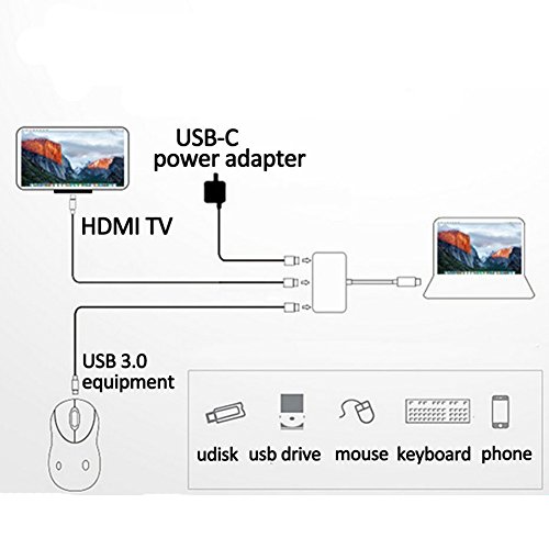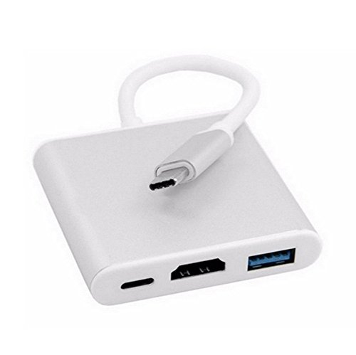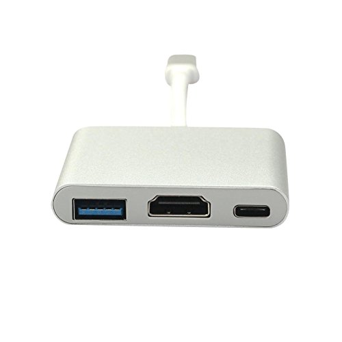 USB 3.1 Type-C To HDMI Adapter 4K Type C USB 3.1 Hub USB-C to USB 3.0/ HDMI/ Type C Female Charger Adapter, for New Macbook, Dell XPS 13, Google Chromebook Pixel and other Type C devices