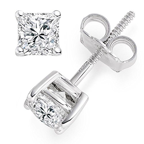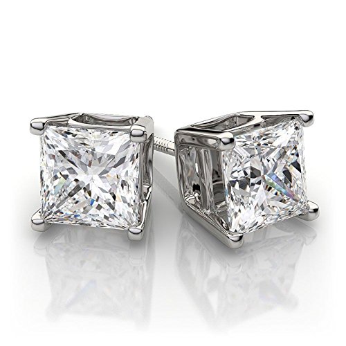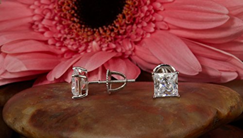 -. Title : 2.0 ct P.R.Incess Brilliant Cut Simulated Diamond CZ Solitaire Stud Earrings in 14k White Gold Screw Back