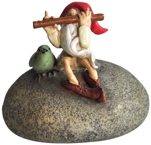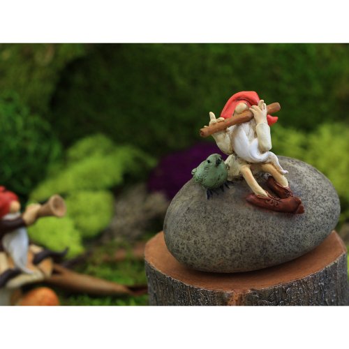 Top Collection Miniature Fairy Garden and Terrarium Gnome Playing Flute with Bird Statue