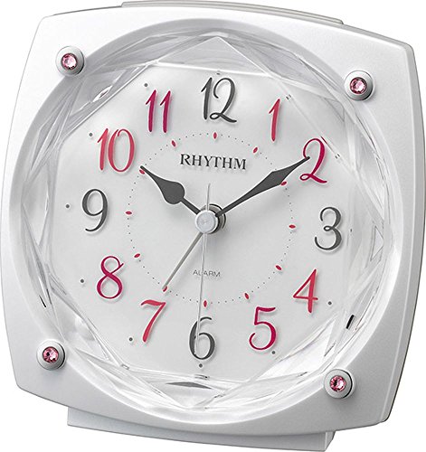-. Title : リズム時計 目覚まし 時計 アナログ ソプラノR659 連続秒針 クリスタル 飾り 付 白 パール RHYTHM 8RE659SR03